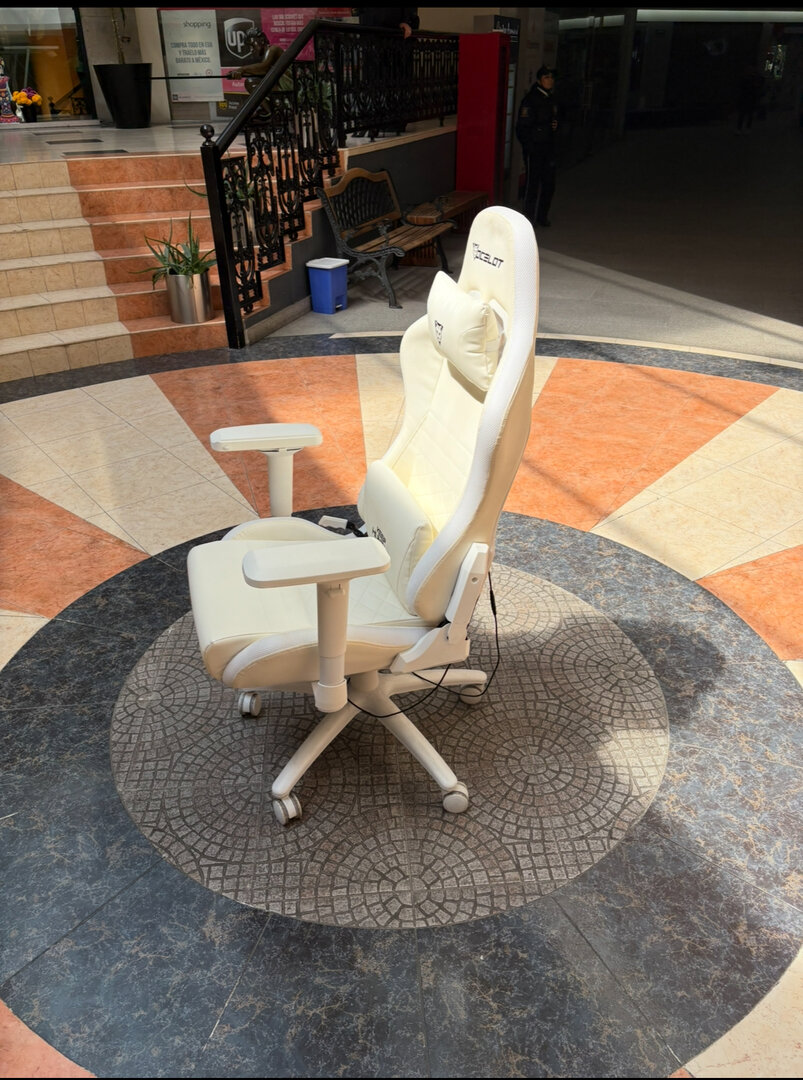 SILLA GAMER OCELOT GAMING RGB /BLANCA/ BASE AJUSTABLE DE METAL / DESCANSA BRAZOS AJUSTABLES DE 4 DIMENSIONES / ANGULO DE INCLINACION 155 GRADOS / SOPORTA HASTA 150KG / COJIN DE DESCANSO LUMBAR Y CERVICAL.