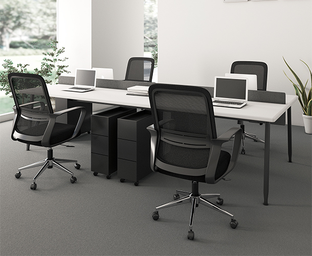 • Respaldo de malla transpirable con soporte lumbar