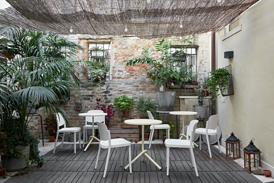 Villa 2 es apilable hasta 6 unidades y también se puede utilizar como silla de jardín, para balcones, terrazas y eventos al aire libre.