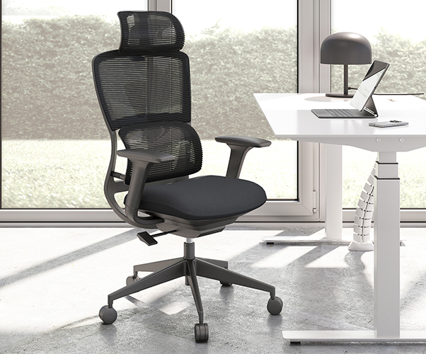 respaldo: en malla de diseño ergonómico y cabecera ajustable con sistema flotante.