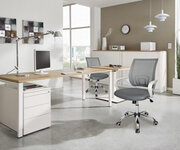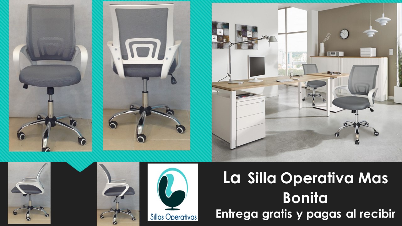 Silla Operativa con respaldo de malla y asiento gris de tela microespacial