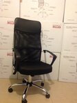 Sillon Ejecutivo, respaldo de malla alto, Asiento de tela microespacial, brazos futuristas, estrella cromada, rodajas negras
