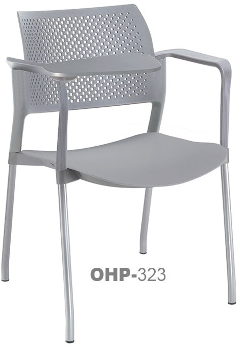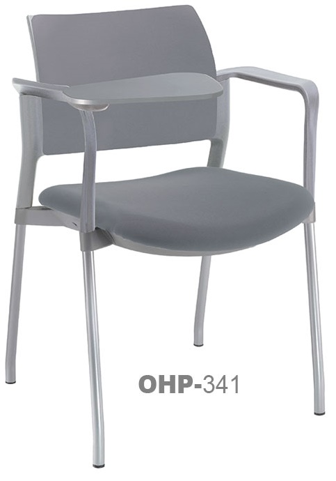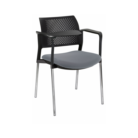estructura: de acero tubular de 7/8" de diámetro, calibre 14; color gris, con descansabrazos de polipropileno en color negro y con paleta lateral abatible en color negro fijada al brazo mediante un dispositivo. respaldo: en polipropileno de alta densidad y alta resilencia.