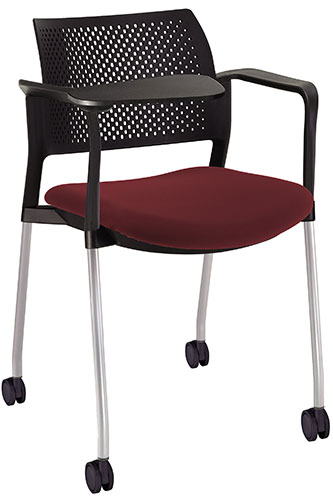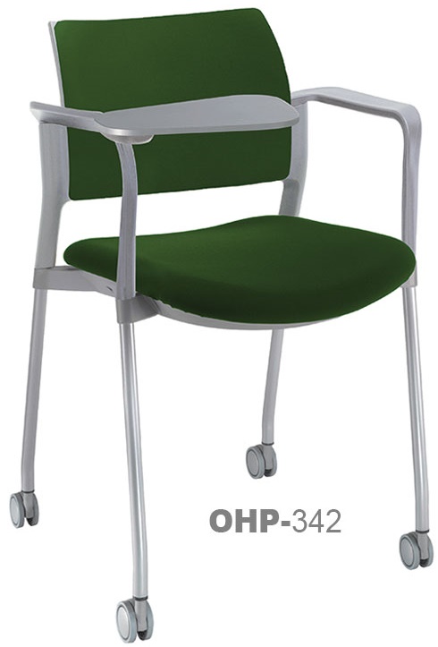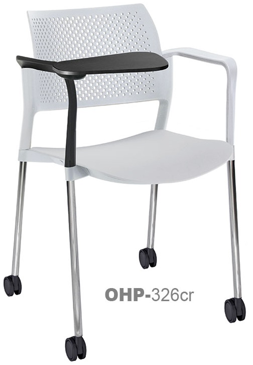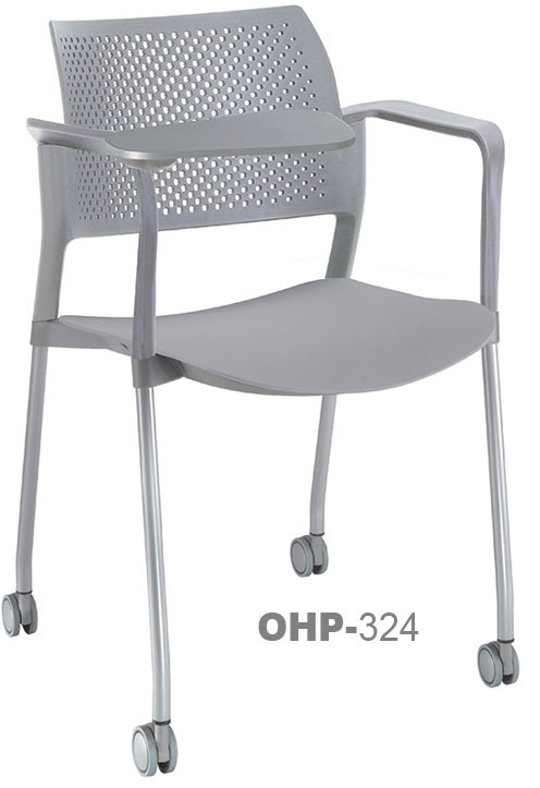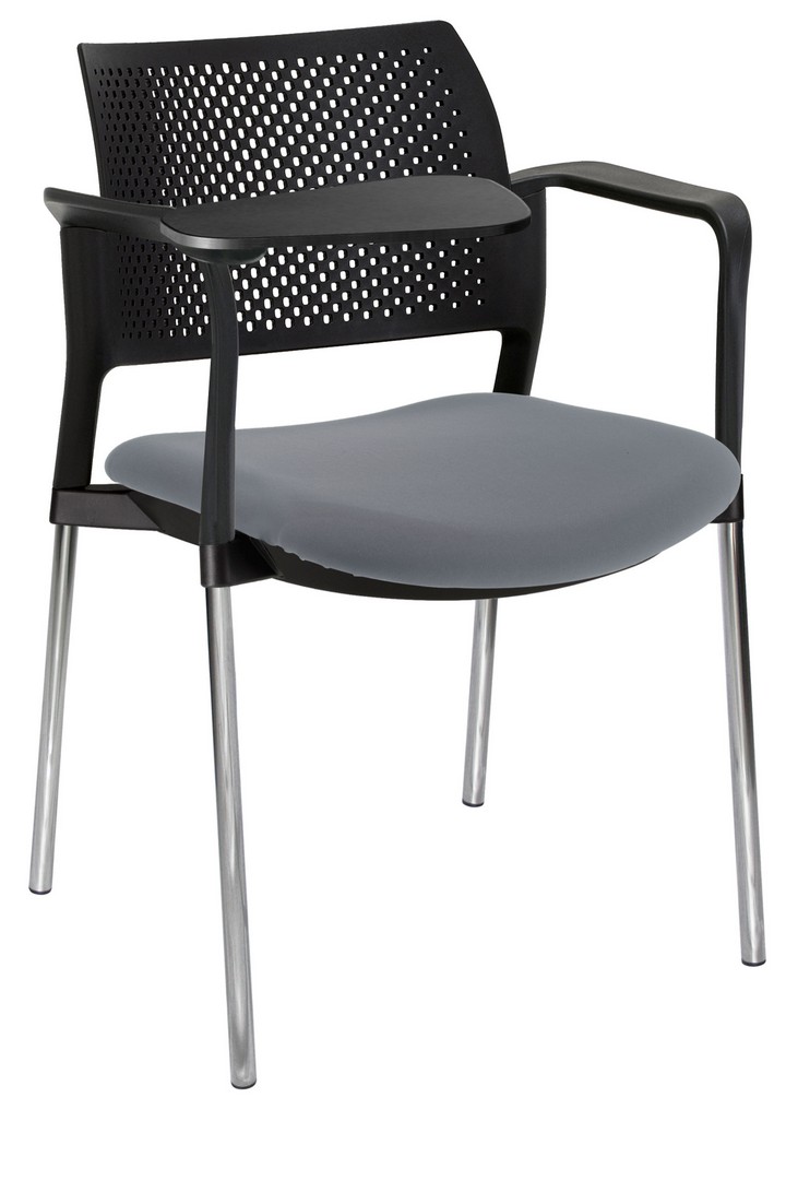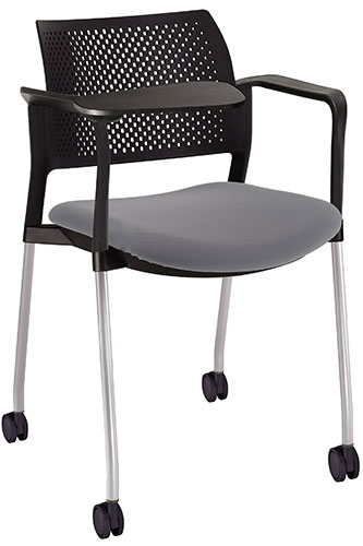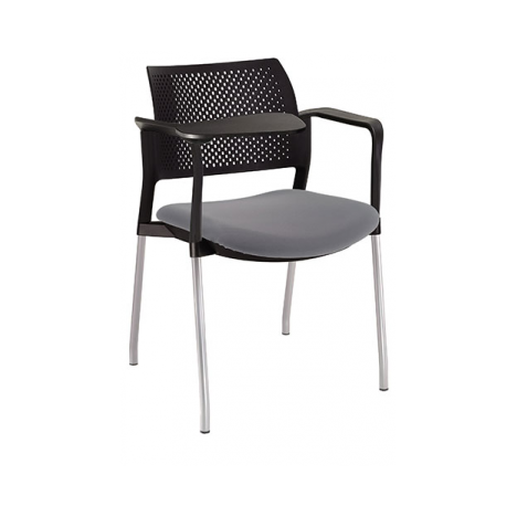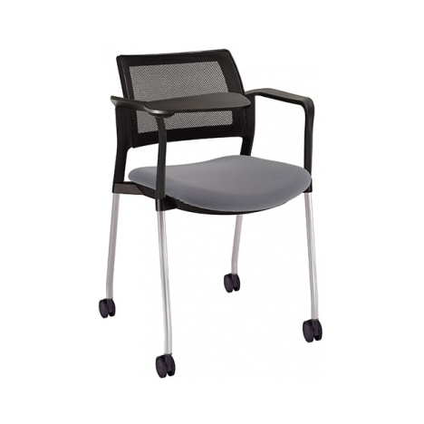 estructura: de acero tubular de 7/8" de diámetro, calibre 14; color gris, con rodajas giratorias tipo dual en color negro, con descansabrazos de polipropileno en color negro y con paleta lateral abatible en color negro fijada al brazo mediante un dispositivo. respaldo: en polipropileno de alta densidad y alta resilencia. asiento: hule espuma de poliuretano inyectado flexible con densidad de 60 kgs/m3 con retardante a la flama y alta resilencia.