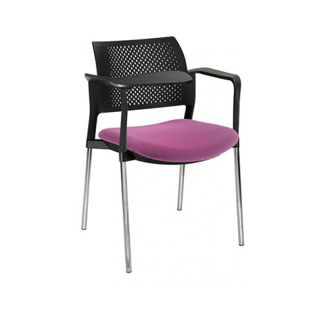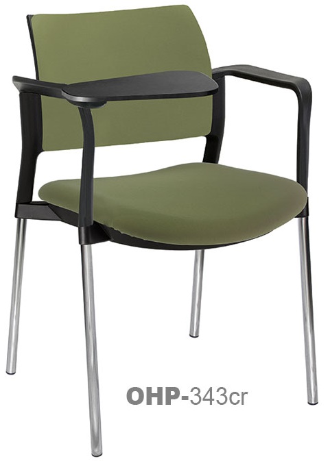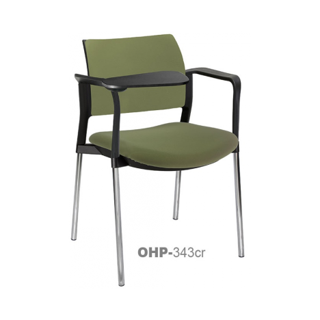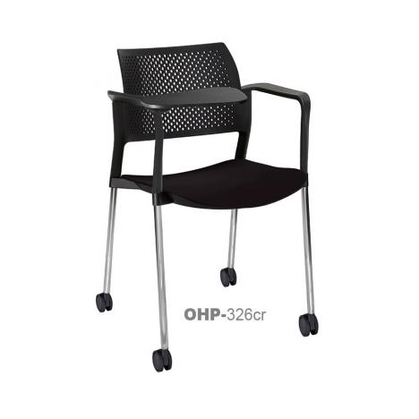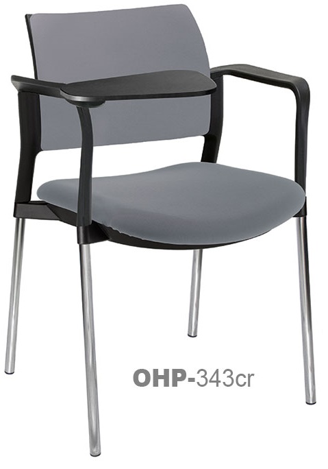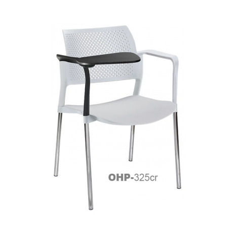 estructura: de acero tubular de 7/8" de diámetro, calibre 14; terminado en cromo, con descansabrazos de polipropileno en color negro y con paleta lateral abatible color negro fijada al brazo mediante un dispositivo. respaldo: en polipropileno de alta densidad y alta resilencia.