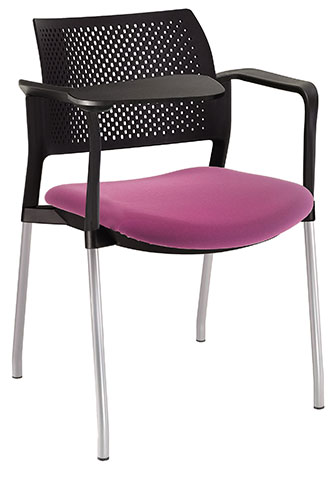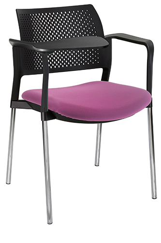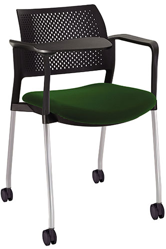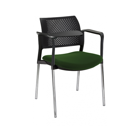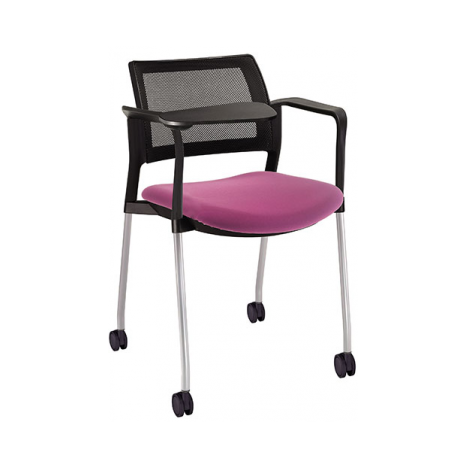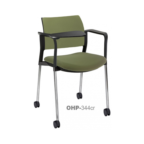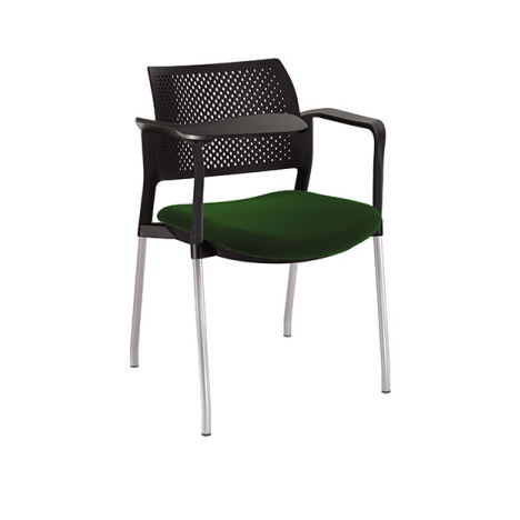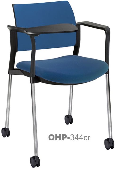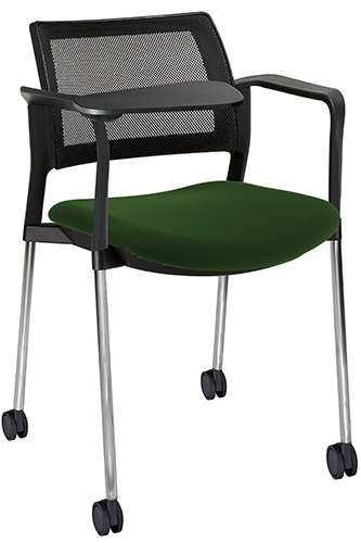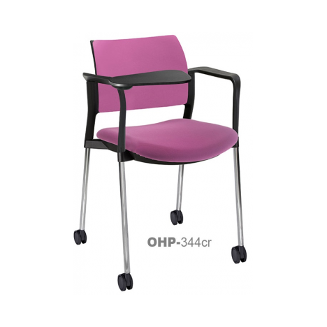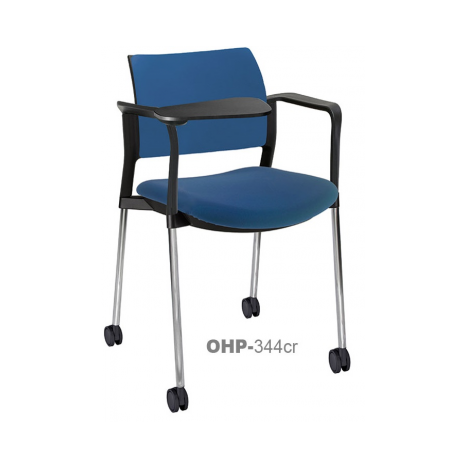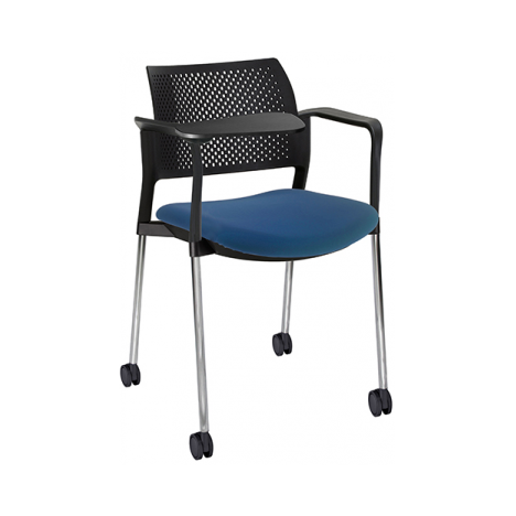 RESPALDO POLIPROPILENO ASIENTO TELA PALETA ABATIBLE 4 PATAS RUEDAS CROMADO COLORES estructura: de acero tubular de 7/8 "de diámetro, calibre 14; terminado en cromo, con rodajas giratorias tipo dual color negro, con descansabrazos de polipropileno en color negro y con paleta lateral color abatible color negro fijada al brazo mediante un dispositivo.