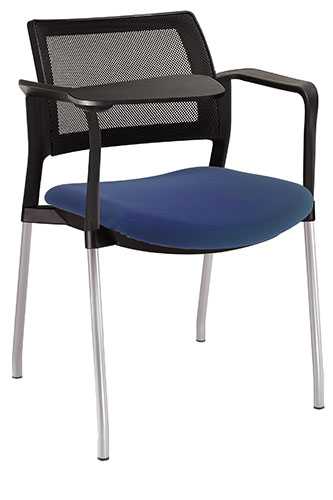 estructura: de acero tubular de 7/8" de diámetro, calibre 14; terminado en cromo, con descansabrazos de polipropileno en color negro y con paleta lateral abatible color negro fijada al brazo mediante un dispositivo. respaldo: en malla diseño ergonómico.