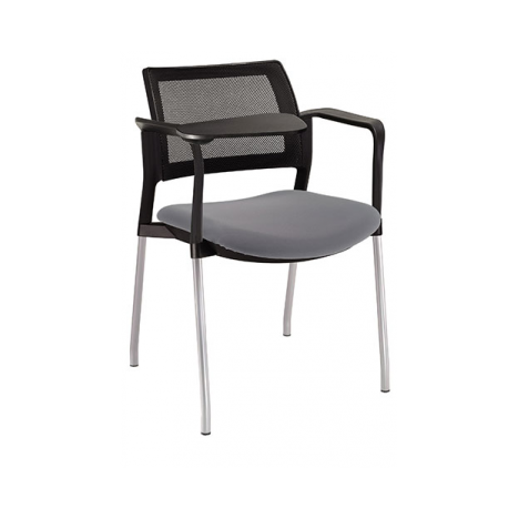 estructura: de acero tubular de 7/8 "de diámetro, calibre 14; color gris, con descansabrazos de polipropileno en color negro y con paleta lateral abatible en color negro fijada en el servicio mediante un dispositivo. respaldo: en malla diseño ergonómico.