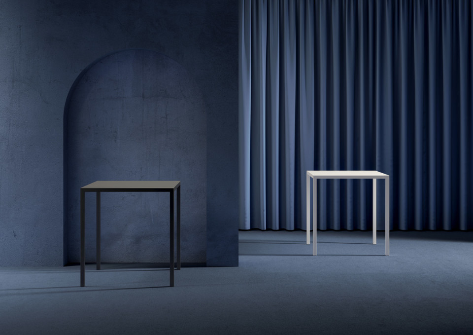 QU es una mesa minimalista y discreta, concebida principalmente para entornos al aire libre: la estructura de tubo metálico es de hecho autonivelante, por lo que es adecuada para colocar incluso en superficies algo irregulares. Es adecuada para ser colocada fácilmente en jardines, balcones y terrazas en la calle, así como en ambientes con pavimentos que no son totalmente planos.